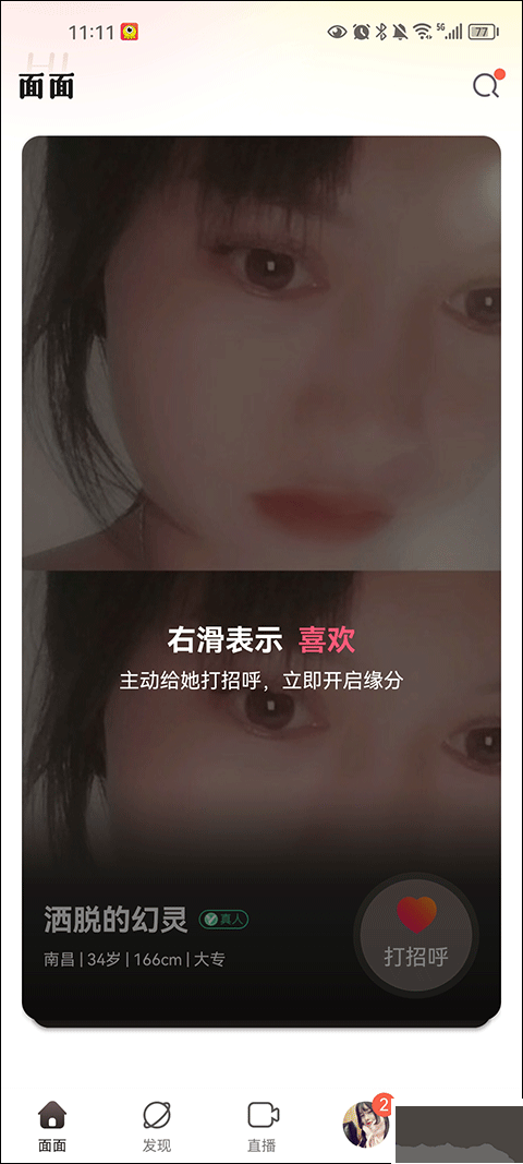 1、可以通過右滑對異性表示喜歡,還可以跟異性打招呼。
