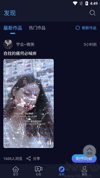 4、返回主界面,點(diǎn)擊合拍,任意選擇一個素菜開始制作合拍視頻;