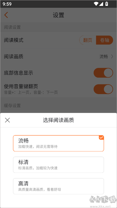 3、根據(jù)網(wǎng)絡(luò)情況或閱讀偏好,自由選擇高清、標(biāo)準(zhǔn)或省流畫質(zhì),即可生效。