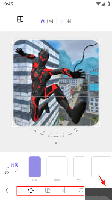 2、從設(shè)備相冊(cè)添加待處理圖片,可于底部調(diào)整方向與比例,確認(rèn)后點(diǎn)擊右方對(duì)勾。