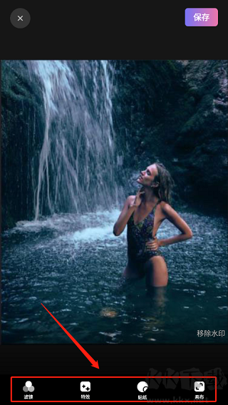 5、圖片修改完畢后,輕觸右上方保存按鈕即可,你可將圖片快速傳送至常用社交平臺。