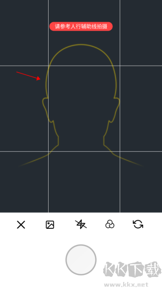 2、拍攝時提供人像輔助線指引,幫助用戶精準控制頭部位置與比例,確保成片符合官方審核要求。