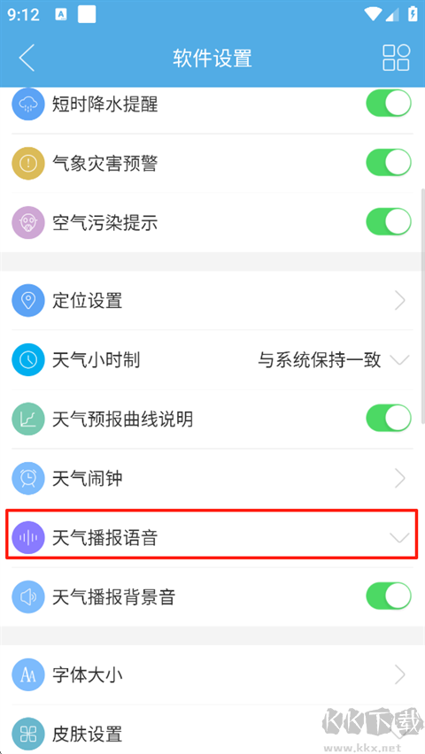 3、點(diǎn)擊【天氣播報語音】