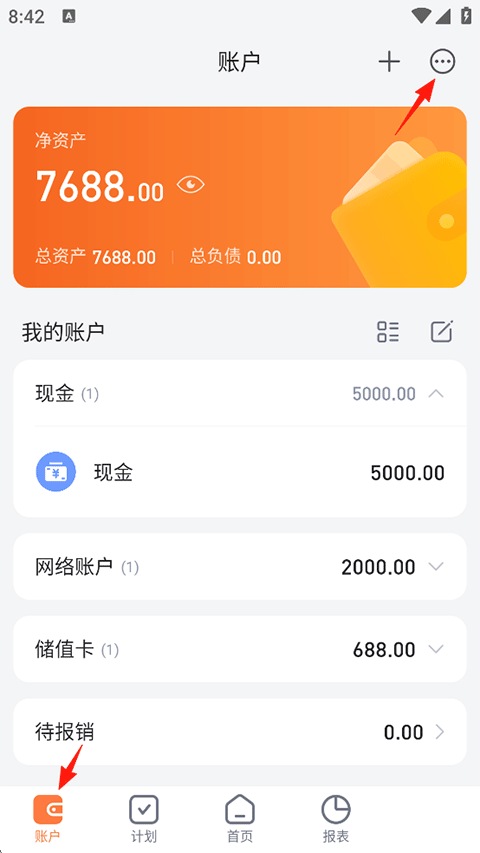1、打開挖財記賬APP,點擊賬戶頁-右上角擴展按鈕;