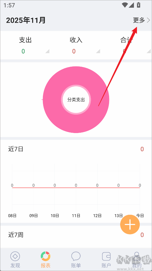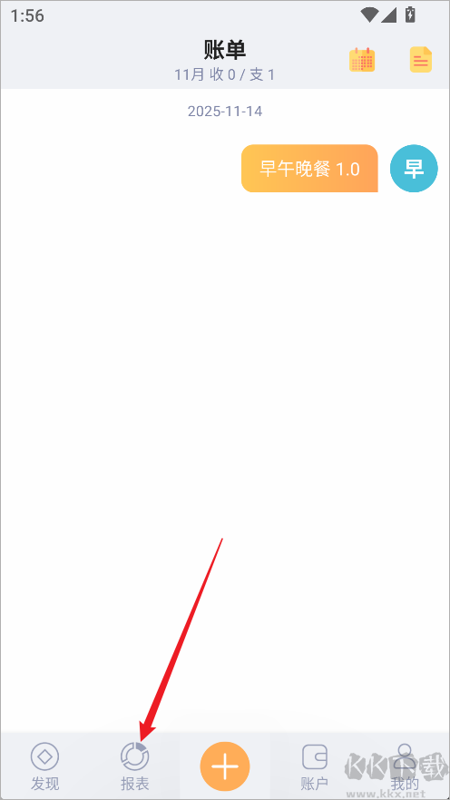 1、打開(kāi)天天記賬后,先點(diǎn)擊底部導(dǎo)航欄中的【報(bào)表】進(jìn)入統(tǒng)計(jì)頁(yè)面。
