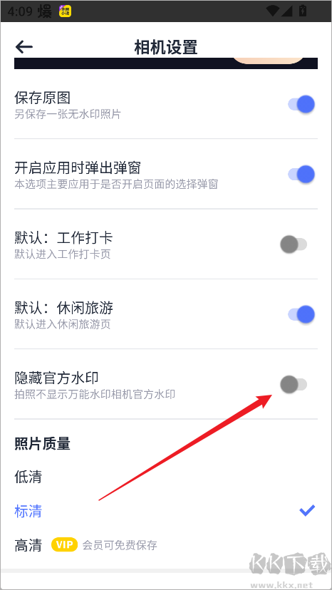 4、在設(shè)置中,你還可以選擇隱藏官方水印,讓照片更干凈整潔。