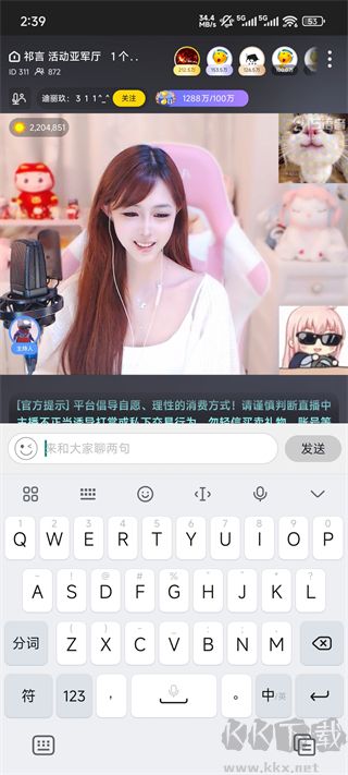 2、點(diǎn)擊你喜歡的進(jìn)入直播間,你可以打字和他交流