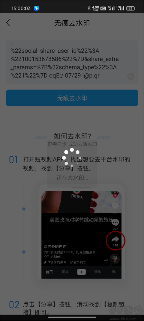 2、前往抖音復(fù)制想要去水印的視頻鏈接,并將其粘貼到輸入框中。