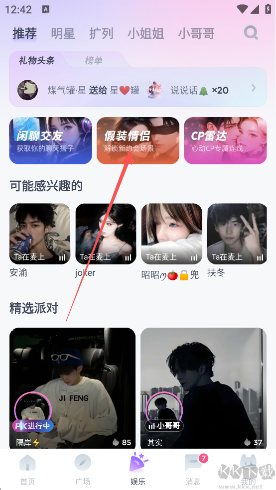 2、然后點(diǎn)擊【假裝情侶】