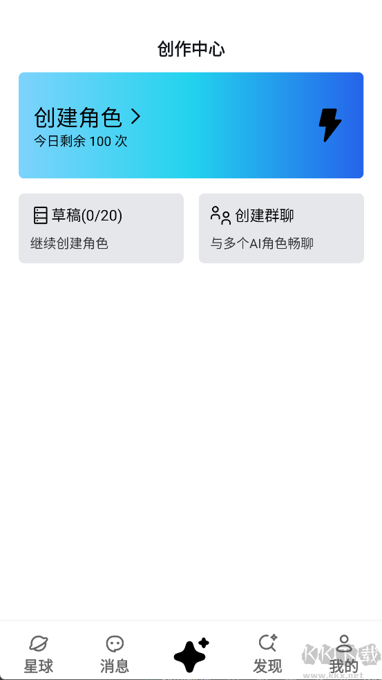 1、如夢(mèng)AI App,點(diǎn)擊底部導(dǎo)航欄的中間的按鈕進(jìn)入創(chuàng)作中心;