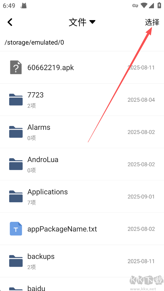 2、然后點(diǎn)擊右上角的【選擇】選中你需要壓縮的文件