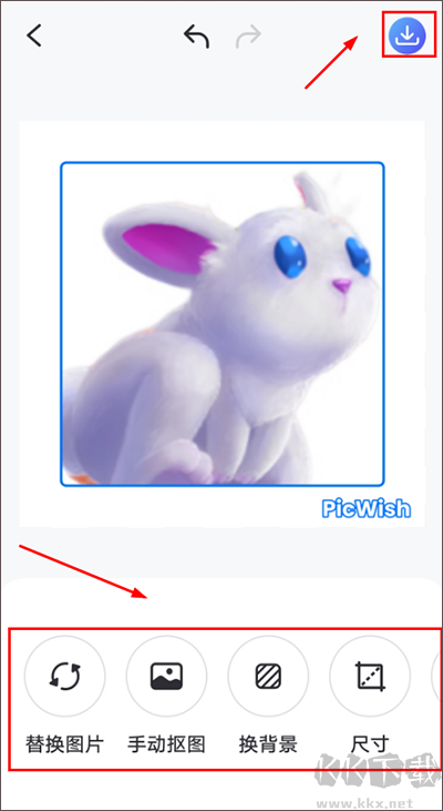 3、圖片摳圖成功后,用戶可以根據(jù)自己的需求,對(duì)圖片進(jìn)行換背景,裁剪尺寸,加陰影等操作,改動(dòng)完成后,點(diǎn)擊【保存】即可保存在手機(jī)內(nèi)。