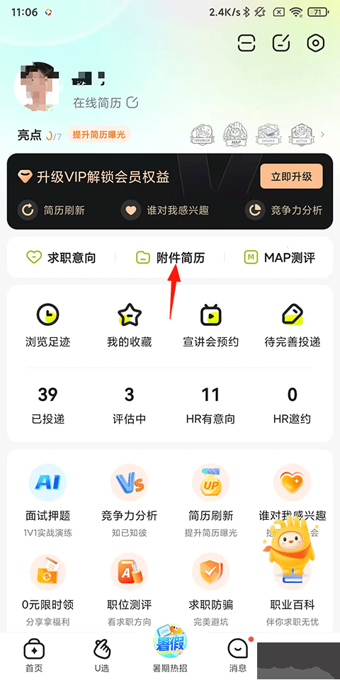 2、進(jìn)入后點(diǎn)擊下方的上傳簡(jiǎn)歷附件;