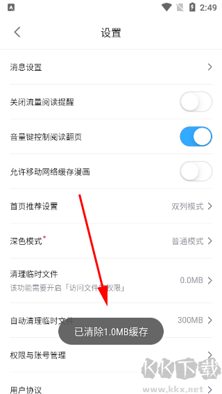 4、臨時(shí)文件清理完畢后,界面上會(huì)彈出已清除緩存的提示字樣,如下圖所示,這就表示成功清理臨時(shí)文件了。