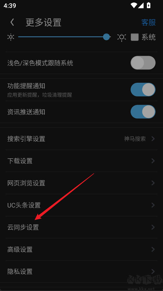 3、向下滑動找到“云同步”選項。