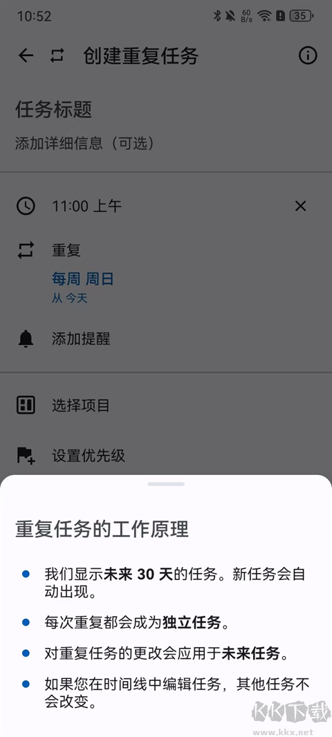 設(shè)置每日、每周或自定義時間表的重復任務(wù)。永遠不要忘記日?;顒?。