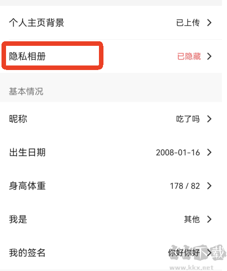 2、找到【隱私相冊(cè)】這個(gè)選項(xiàng),點(diǎn)擊。