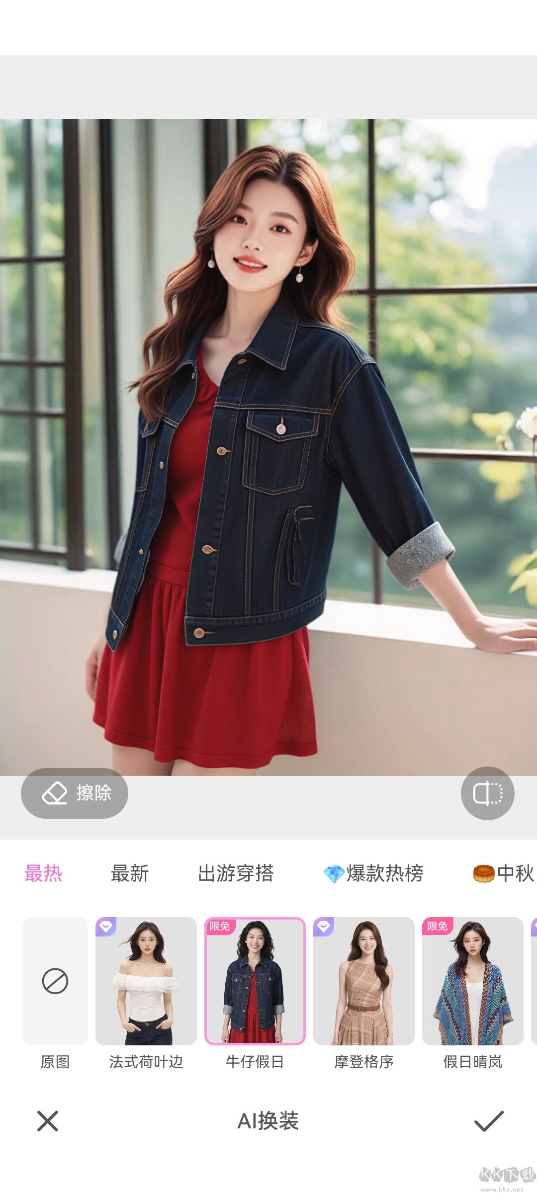 6、同樣的選擇需要換衣服的圖片,在下方找到AI換裝同樣也可以。