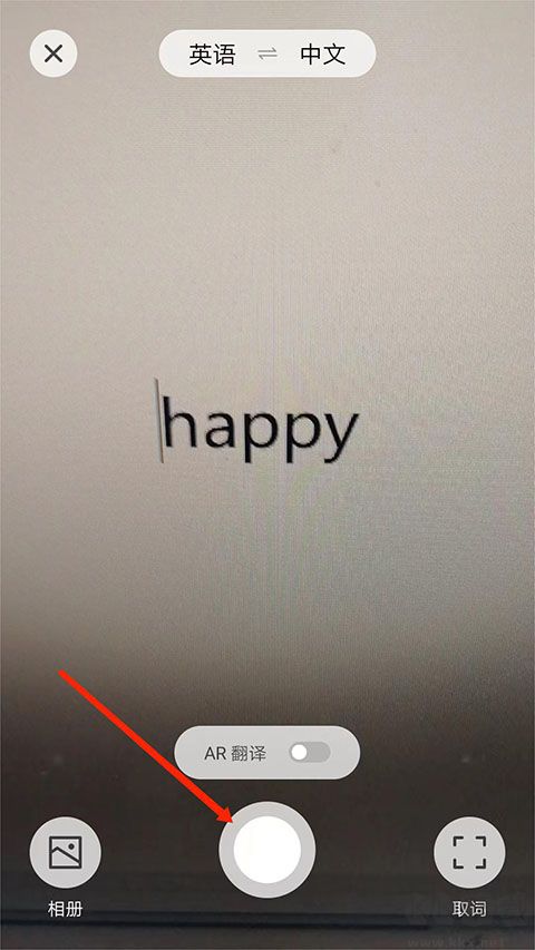 2、進入到翻譯界面,對準需要翻譯的內(nèi)容,選擇下方“圓形”拍攝;