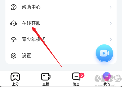 1、在個人主頁位置點擊下方的在線客服;