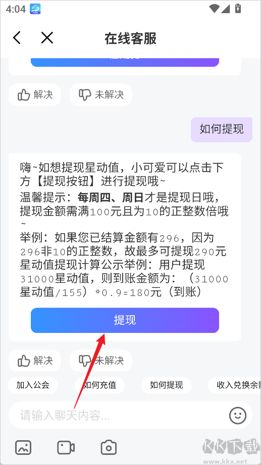 溫馨提示:每周四、周日才是提現(xiàn)日哦,提現(xiàn)金額需滿100元且為10的正整數(shù)倍哦。