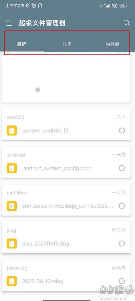 1、進(jìn)入軟件后可查看最近、分類以及內(nèi)存儲(chǔ)