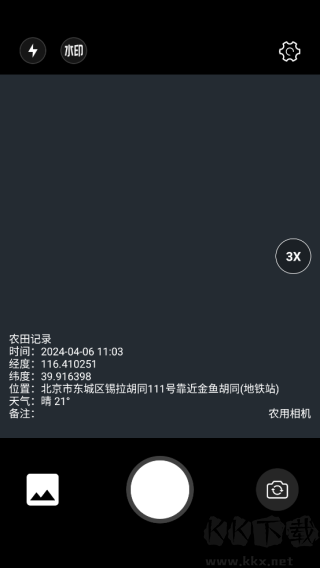 農(nóng)用相機app是一款為農(nóng)業(yè)工作者打造的水印相機軟件,適用于農(nóng)田、作物、農(nóng)機、農(nóng)事記錄等各類農(nóng)業(yè)相關(guān)拍照場景。可以便捷設(shè)置水印并一鍵拍照,軟件支持自動生成精準(zhǔn)的時間、位置信息,定位功能精準(zhǔn)可靠,保障照片信息真實無誤;還提供自由添加個人信息,更細致、真實地記錄農(nóng)事工作細節(jié)。需要的朋友快來下載試試吧!