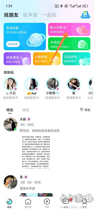 2、緣分戀愛開啟后系統(tǒng)會自動為你尋找同城附近緣分