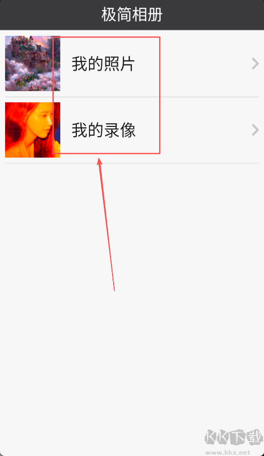 1、打開極簡相冊選取我的照片查看圖片。選擇我的錄像觀看視頻內(nèi)容并進(jìn)行處理。
