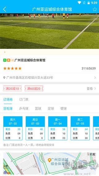 3、進(jìn)入場館詳情頁,選擇日期時請注意當(dāng)日天氣狀況,若遇雨天導(dǎo)致戶外場地?zé)o法使用,可調(diào)整日期或辦理退費(fèi)。