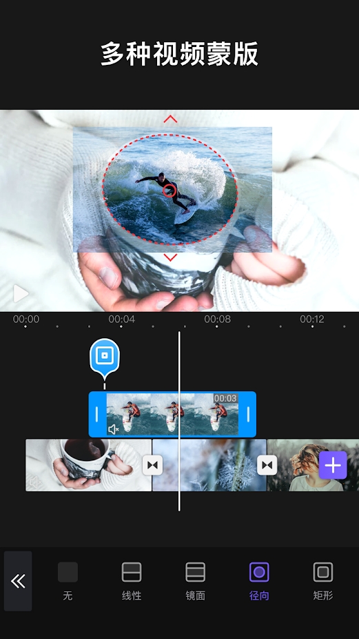 2、關(guān)鍵幀動(dòng)畫,支持蒙版,視頻/照片畫中畫,文字,貼紙,emoji