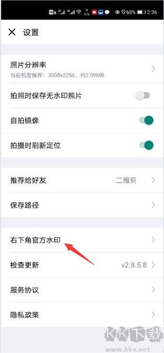 4、接下來(lái)點(diǎn)選“右下角官方水印”選項(xiàng)進(jìn)入。