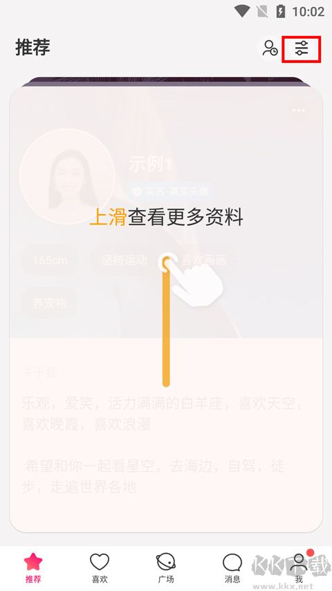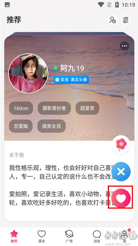 4、你喜歡對方之后,對方會得到推薦,如果對方也點(diǎn)擊喜歡你之后,你們就可以進(jìn)行聊天了。