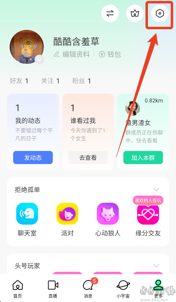 1、在個人主頁界面點擊右上角的設(shè)置。