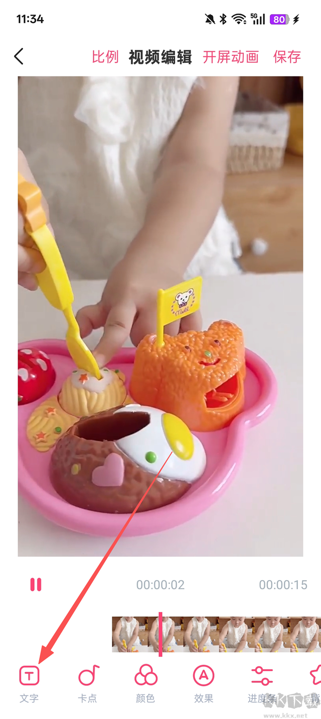 3、然后點擊【文字】,開始編輯視頻內(nèi)的文字