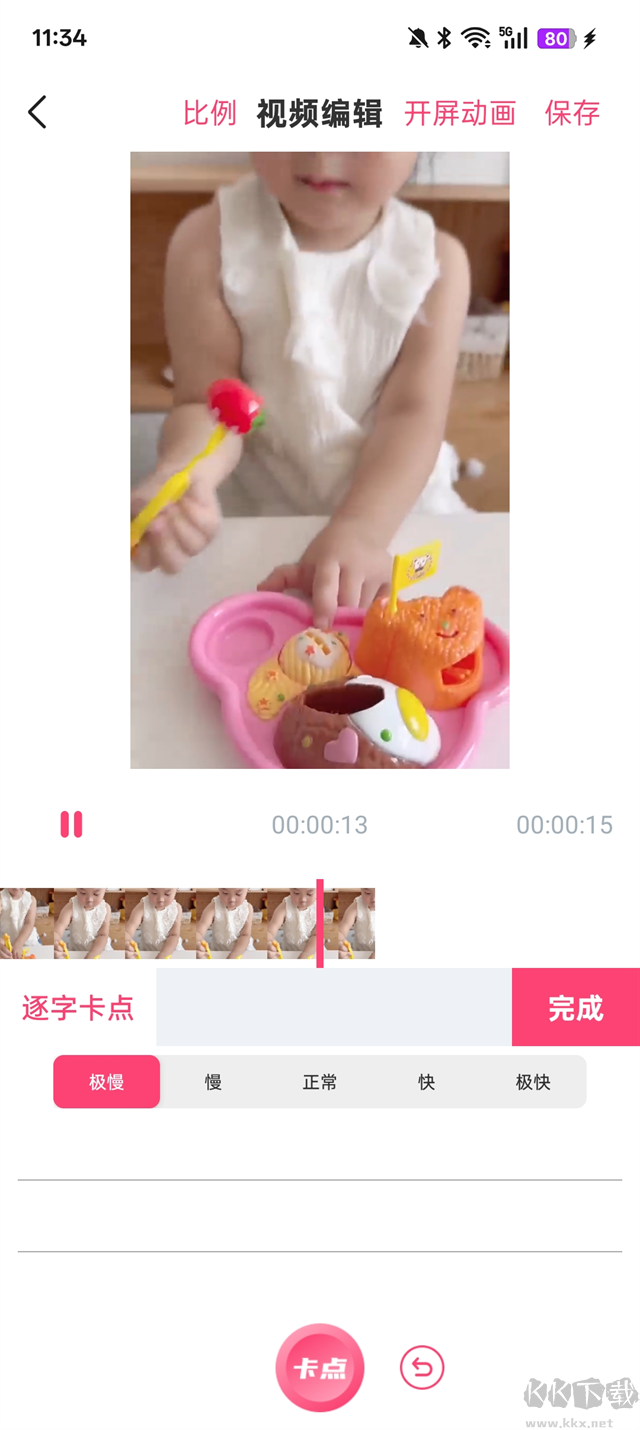 1、導(dǎo)出:一鍵保存成品視頻至手機(jī)相冊,操作簡單。