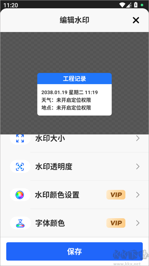 支持個(gè)性化設(shè)置水印內(nèi)容,可包含時(shí)間、地點(diǎn)、經(jīng)緯度、海拔高度、朝向角度、地理坐標(biāo)、天氣狀況、工程詳情及用戶自設(shè)備注等;