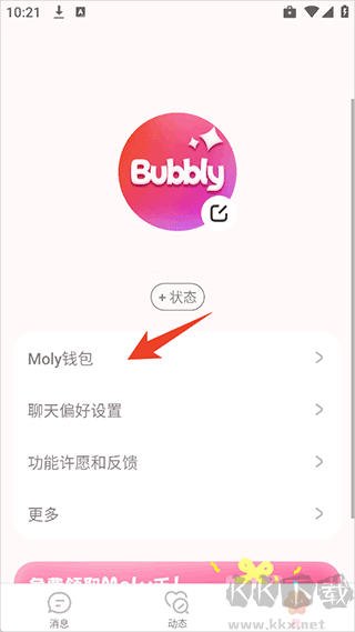 4、接著就可以在Bubbly app查看同步過(guò)來(lái)的Moly錢包,以及AI角色信息