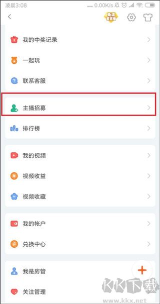 2、點(diǎn)擊屏幕左上方的頭像進(jìn)入登陸個(gè)人中心頁(yè)面,找到菜單欄拉中的主播招募,并點(diǎn)進(jìn)去。