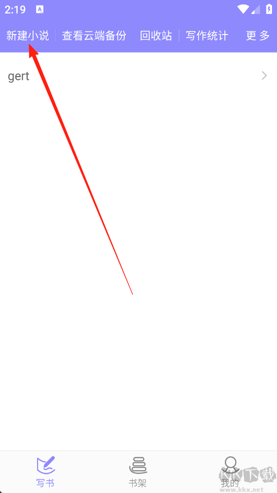 1、打開(kāi)手機(jī)寫(xiě)小說(shuō)App,點(diǎn)擊左上角【新建小說(shuō)】