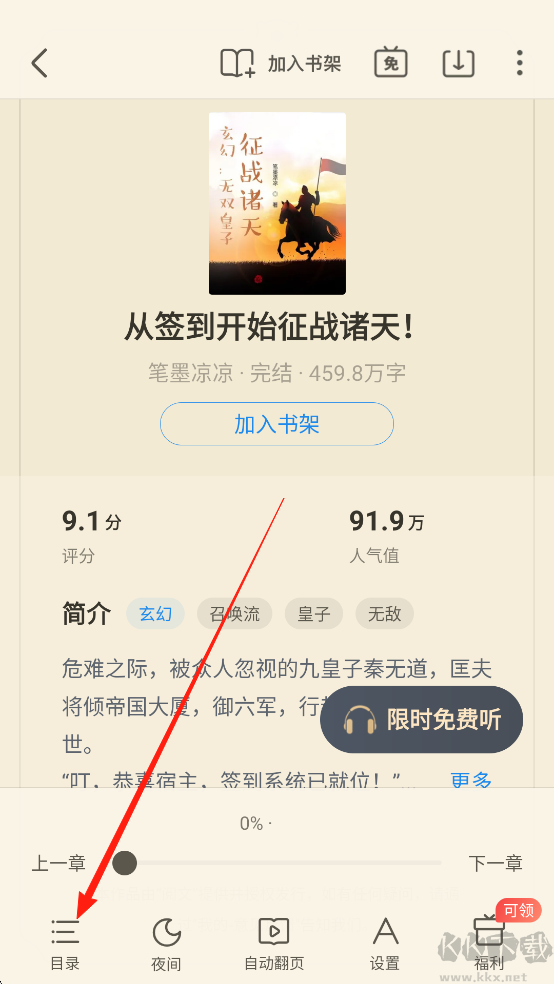 2、然后點擊【目錄】選擇章節(jié)開始閱讀