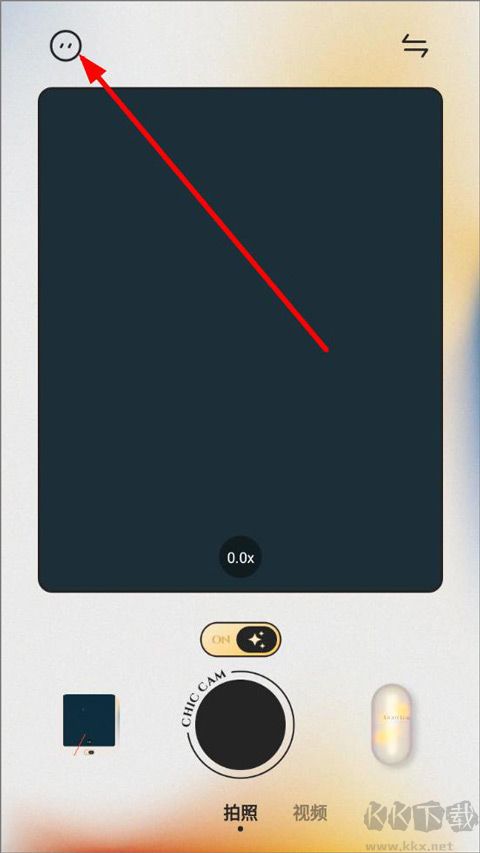 1、打開chiccam相機(jī),進(jìn)入主頁(yè),可以拍照片或者拍視頻,右側(cè)是拍照主題;