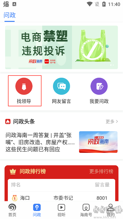 南海網(wǎng)App怎么給上面的領(lǐng)導留言?