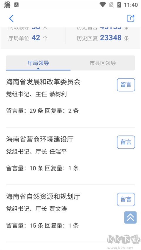 3、南海網(wǎng)App內(nèi)可以選擇給廳級領(lǐng)導或者市縣區(qū)領(lǐng)導留言