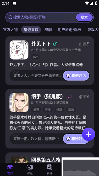 2、進入軟件后會有多種角色類型供你選擇,如官方人物、猜你喜歡、爆改、游戲人物等等;