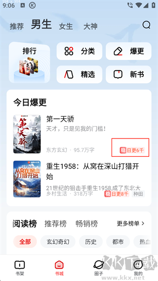 海量免費書:每日持續(xù)更新大量免費小說,題材豐富、風(fēng)格多樣,總有一本打動你;