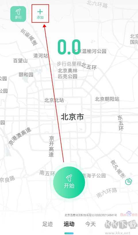 1、進入運動頁面后,點擊左上角添加按鈕,選取要記錄的足跡類別。