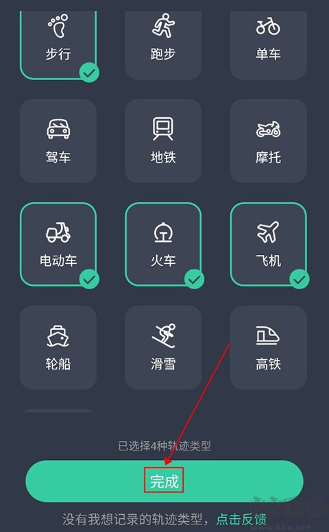 2、挑選日常使用或打算追蹤的運動形式,選定后點按下方完成鍵即可。
