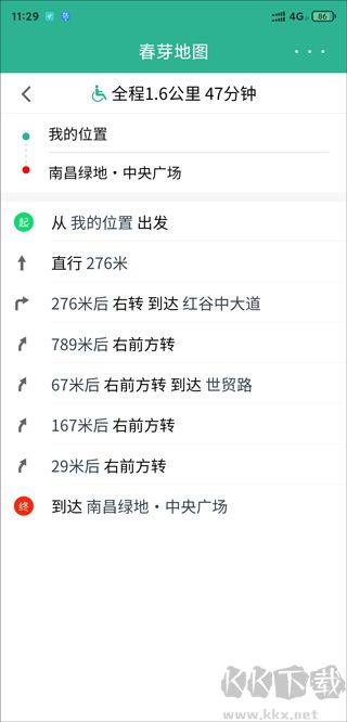 3、點(diǎn)進(jìn)無(wú)障礙模式,眼前就會(huì)出現(xiàn)可走的路線。