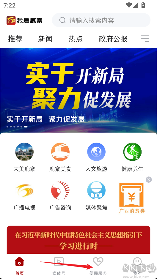 1、啟動應用,點選下方導航欄里的【便民服務】。